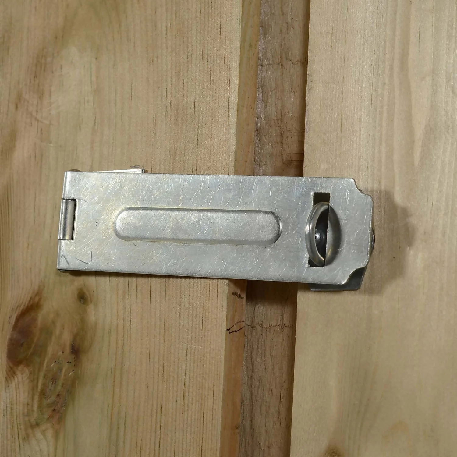- Hidden door hinges and hasp and staple latch for security (padlock not included)