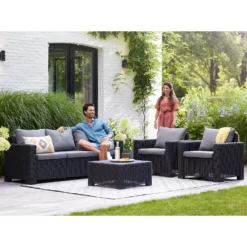 Keter California 5 Seater Outdoor Garden Furniture Sofa And Lounge Set – Graphite With Grey Cushions